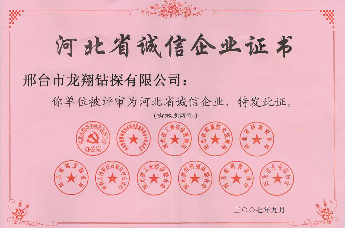 資質(zhì)榮譽 網(wǎng)站首頁 > 關(guān)于龍翔 > 資質(zhì)榮譽 鉆井安全施工證 鉆井施工資質(zhì) 誠信證書 榮譽證書 榮譽證書 邢臺龍翔營業(yè)執(zhí)照 榮譽證書 1 龍翔鉆探公司20年來始終致力于地質(zhì)鉆探工程行業(yè)的企業(yè),本著“用周到的服務(wù)、可靠的產(chǎn)品質(zhì)量讓客戶放心使用”的宗旨,龍翔一直用科學(xué)的設(shè)計、嚴謹?shù)你@探流程、精湛的技術(shù)立志打造出優(yōu)質(zhì)的鉆探工程。走進龍翔,與您共同創(chuàng)造美好的明天! 物探找水 地源熱泵孔 地熱井工程 地熱井工程 地熱井工程 地熱井工程 地熱井工程 公司簡介 聯(lián)系我們 邢臺市龍翔鉆探有限公司 咨詢熱線:18875725353 地址:邢臺市橋西區(qū)地質(zhì)十一隊北院北門內(nèi)路西側(cè)北樓一層2號 網(wǎng)站備案:冀ICP備16011387號-1冀公網(wǎng)安備 13050302000357號 友情鏈接: CmsEasy論壇 九州易通科技有限公司